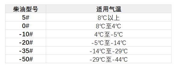 下面這張表格是目前市面上常見(jiàn)的柴油牌號(hào)及其使用溫度范圍,根據(jù)當(dāng)?shù)爻D甑臏囟茸兓x擇柴油,還是很有必要的。