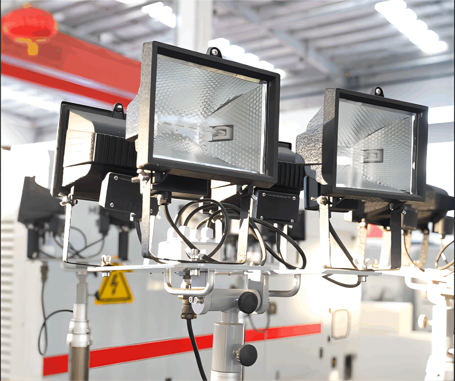 華全電力移動照明燈塔采用高效節(jié)能燈頭,照明燈可以根據(jù)客戶需求定制。我們新西蘭的客戶,就用了4盞1000W金屬鹵化物燈,提供高亮度照明。