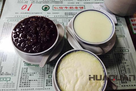 廣東順德是雙皮奶的發源地。創始于清朝末年的仁信老鋪傳承著這門手藝。奶皮厚重粘牙又不失韌性, 奶凍幼滑入口即溶,紅豆沙也是自家熬制,絕非一般紅豆罐頭可比,清淡的豆沙配上甜美的雙皮奶,絕妙!