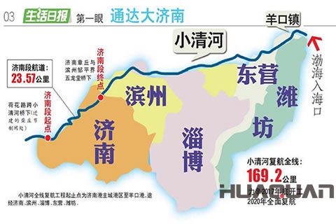 小清河,山東省中西部河流,為古濟(jì)水殘渠,金初由偽齊皇帝劉豫疏導(dǎo)入海,成為一條黃金水道。金元之后,多以其運(yùn)鹽,故又稱“小鹽河”“鹽運(yùn)河”。濟(jì)南東郊黃臺板橋小清河碼頭,船桅林立,首尾相接,為貨物的重要集散地。上世紀(jì)50年代,仍可行舟至濟(jì)南城區(qū),在西門橋、成豐橋設(shè)有客貨碼頭。此后由于人口和用水量增加,小清河水源不足,1997年停航,生態(tài)環(huán)境也遭受破壞。經(jīng)過本次復(fù)航工程,相信“一渠清水,萬千魚蝦”的勝景當(dāng)可恢復(fù)。
